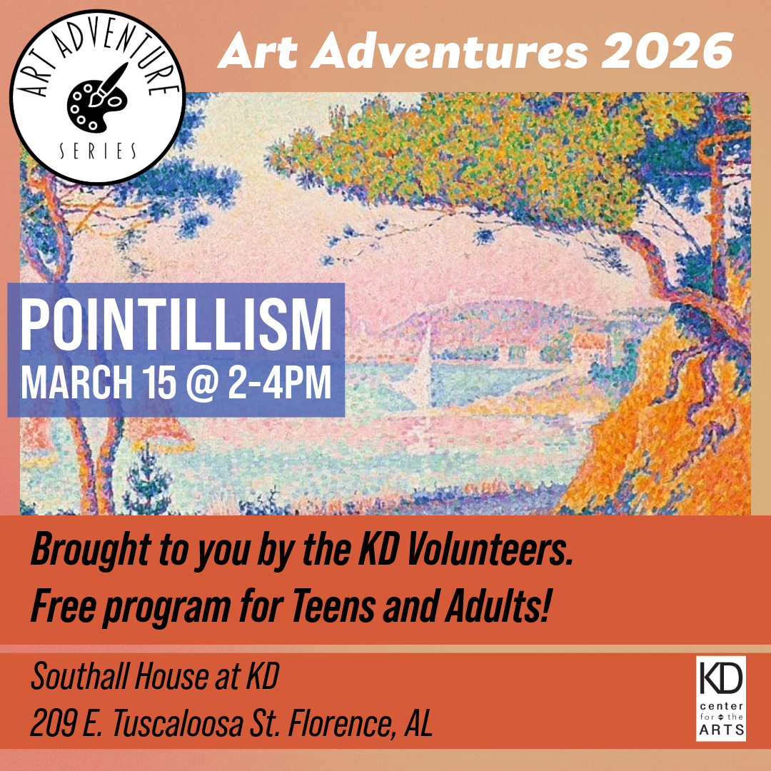 Florence Arts & Museums is pleased to announce the return of Art Adventures at the Kennedy-Douglass Center for the Arts. Join them at Southall House at KD on March 15 from 2-4p.m. Art Educator Elizabeth Renault's presentation will focus on Pointillism and how color can be used to trick the eyes. She will also highlight the artists who discovered and practiced these color techniques.